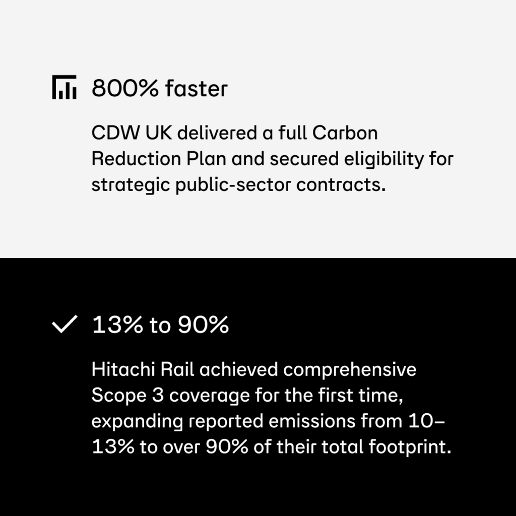 - Always current on CSRD, CDP, and evolving standards, built into the platform