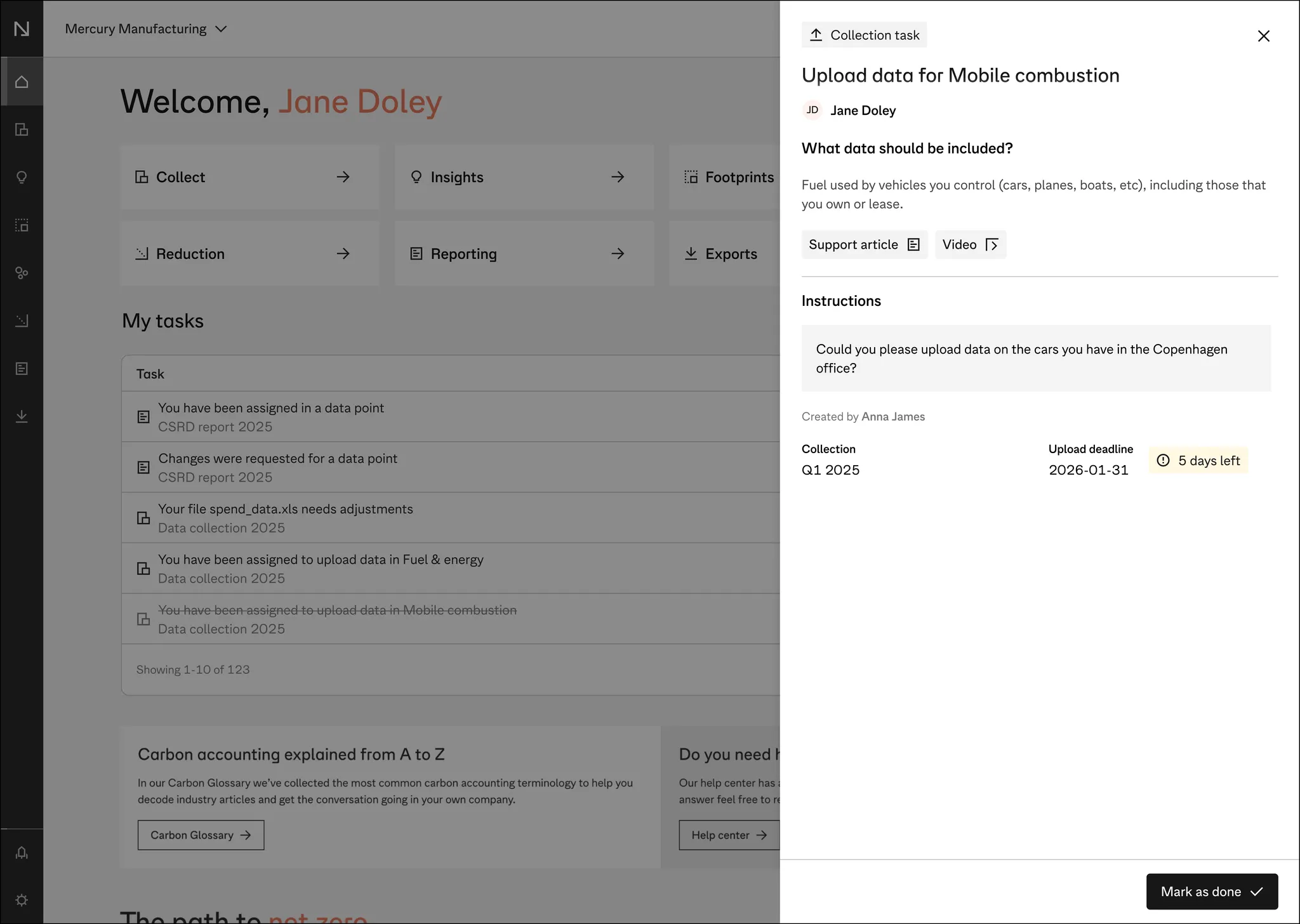 Inbox & Tasks brings distributed collection management directly into your carbon accounting workflow, helping teams collaborate and stay on track without endless email threads or manual follow-ups.